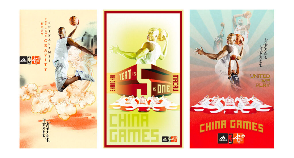 I guess having Kobe on anything will tend to date you, but I really loved these. I brought in these old kung fu instructional posters and Rob reimagined the silhouettes as basketball players and then added them as a design element. Adidas loved it and the China Games were a hit.