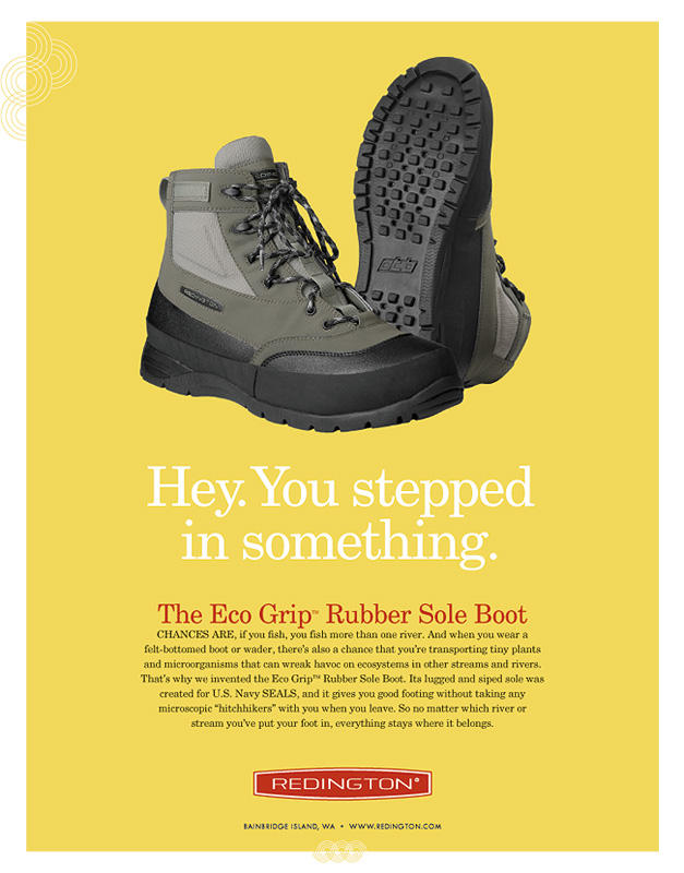Fly fishing is an immersive culture. People get into it, and then you don’t see them much anymore as they take long, solitary trips to remote places. Redington fills a niche somewhere between entry level stuff and those crazy setups that cost as much as a used car. We thought it was beautiful gear, though, so we shot it all up close and personal and did what fishermen do — tell stories about it. Kudos to my late friend and AD/Designer Geoffrey Lorenzen, who looked at all of the extant marketing in the category, saw a million dudes standing in streams at sunrise, and knew we had a chance to stand out by doing something different.
