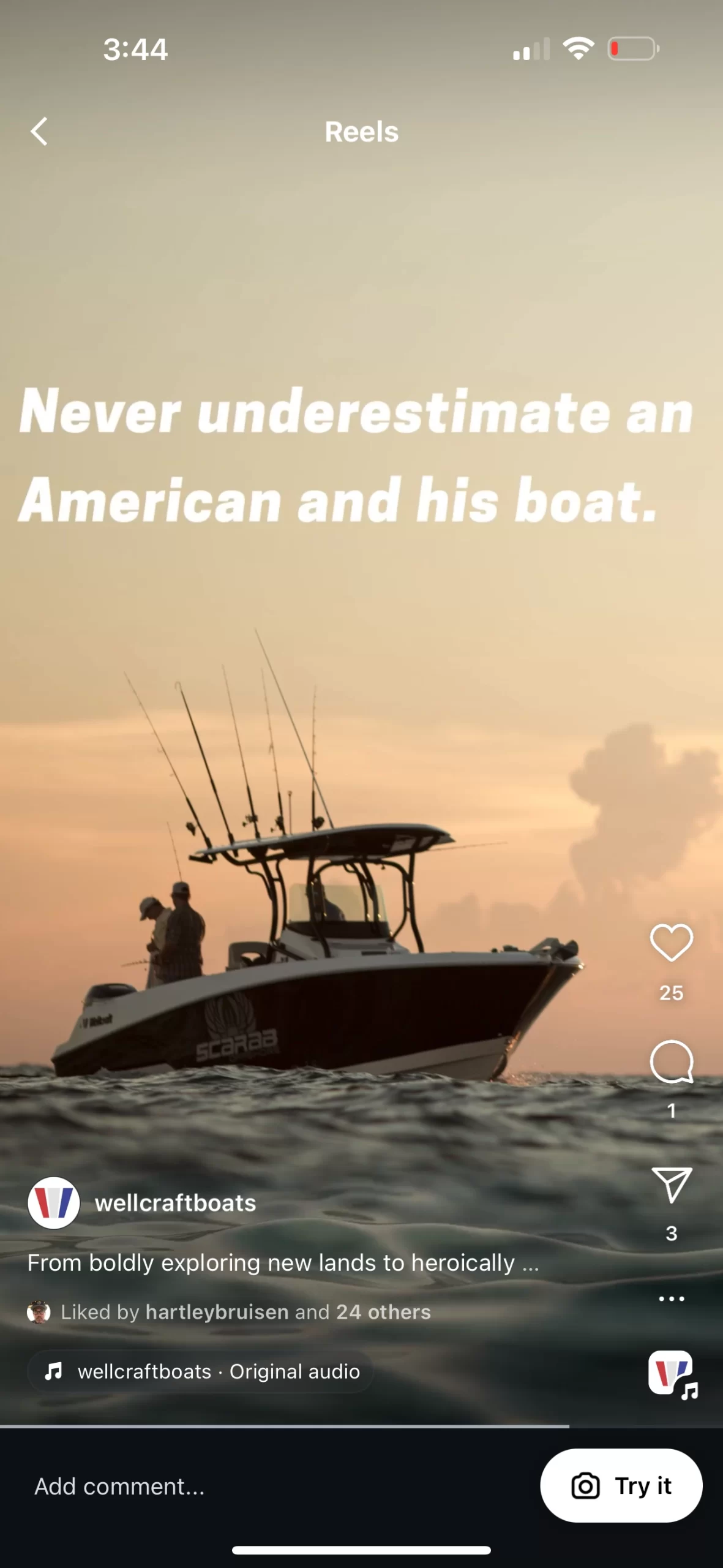 I’ve been a boat nerd all my life, so I was stoked to work on an Instagram campaign for the Wellcraft brand (I even learned to ski behind a Wellcraft). Also, you don’t see a brief every day that includes the words “macho,” and “patriotic” and “nostalgic.” More of that, please.